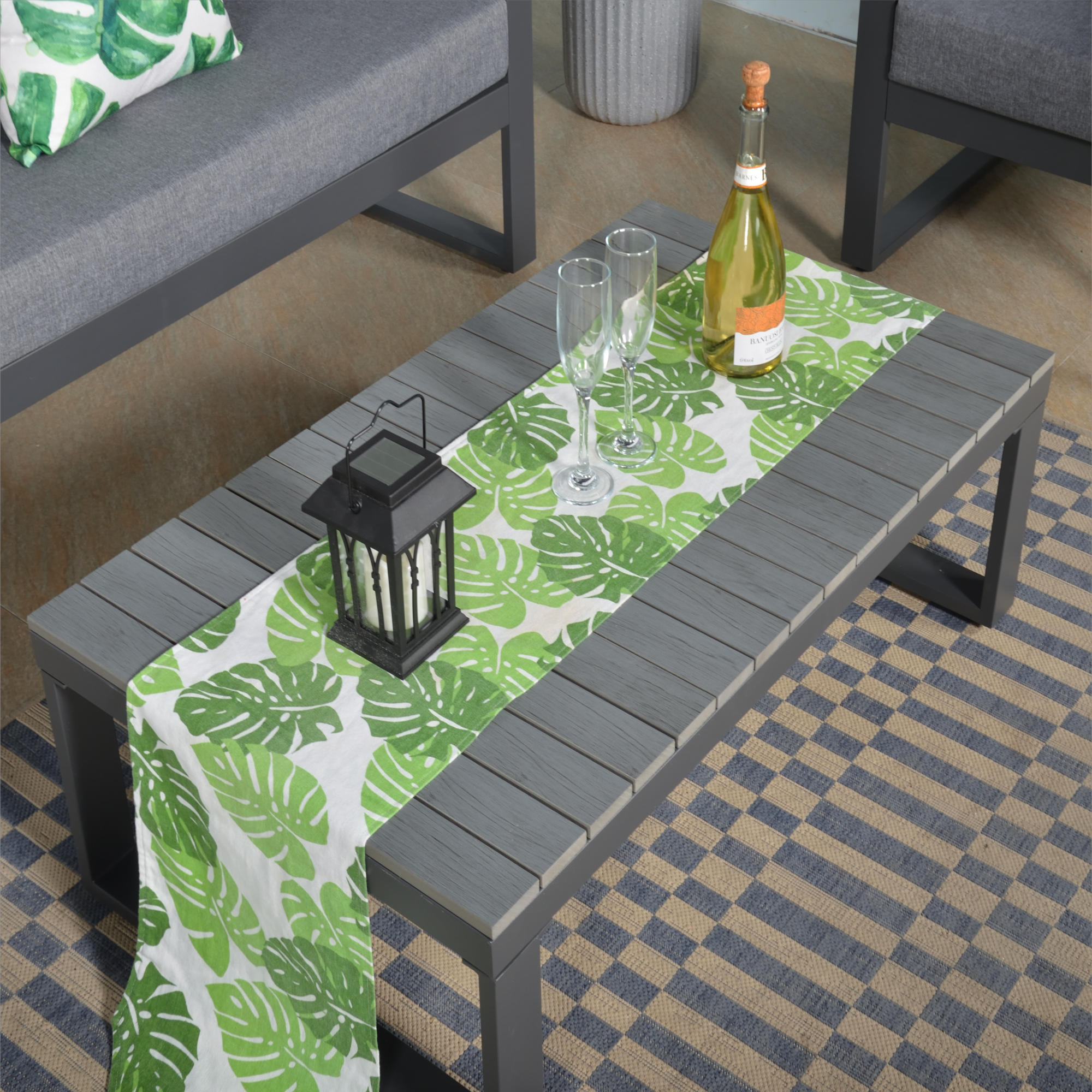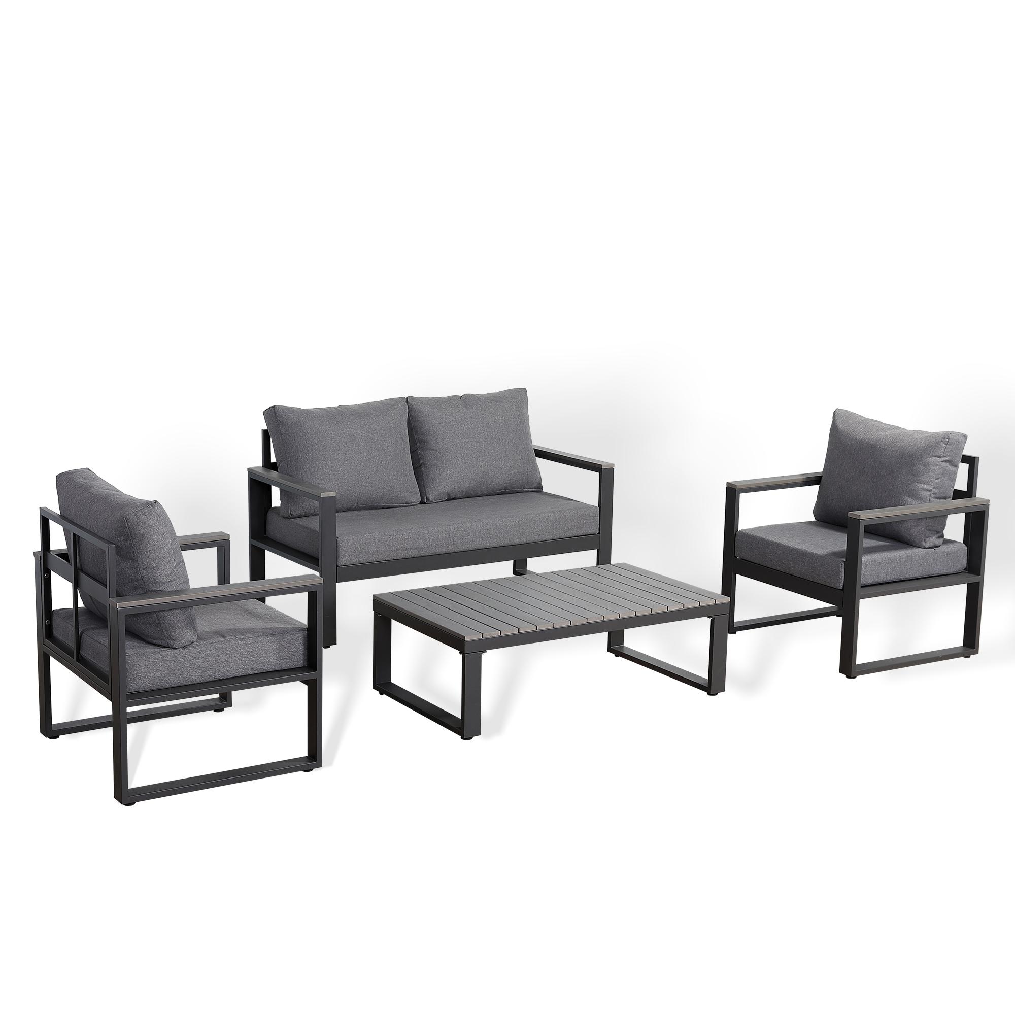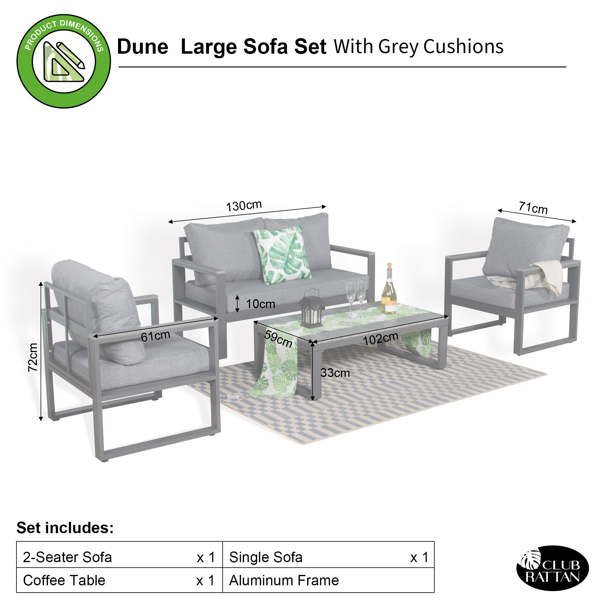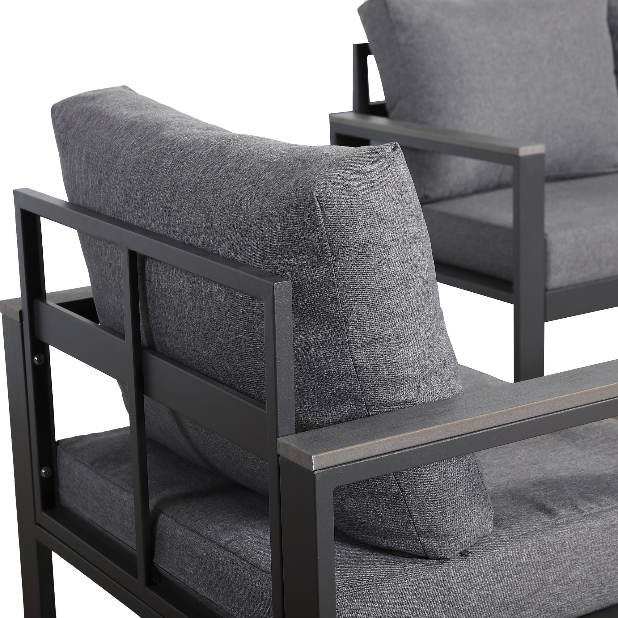 Care for your FurnitureOur Furniture is Constructed of heavy-duty aluminum, the main frame of the sofa set is of high stability and won't easily rust or deform. Comfortable Seat - With large sitting area, the sofas with 10cm thickened cushions offer you much coziness to sit, making you fully relaxed. The cushion cover is removable and washable thanks to the zipper design. Coffee Table - The slatted coffee table also provides much convenience for you to fetch snacks and drinks. Adjustable footpads of coffee table improve the stability The Screws and bolts & welds can develop a film of rust in damp conditions. The frames of our sets are coated for optical reasons. The coating is sometimes minimally damaged in the production process. This doesn't affect the quality or durability of the frame in any way. |