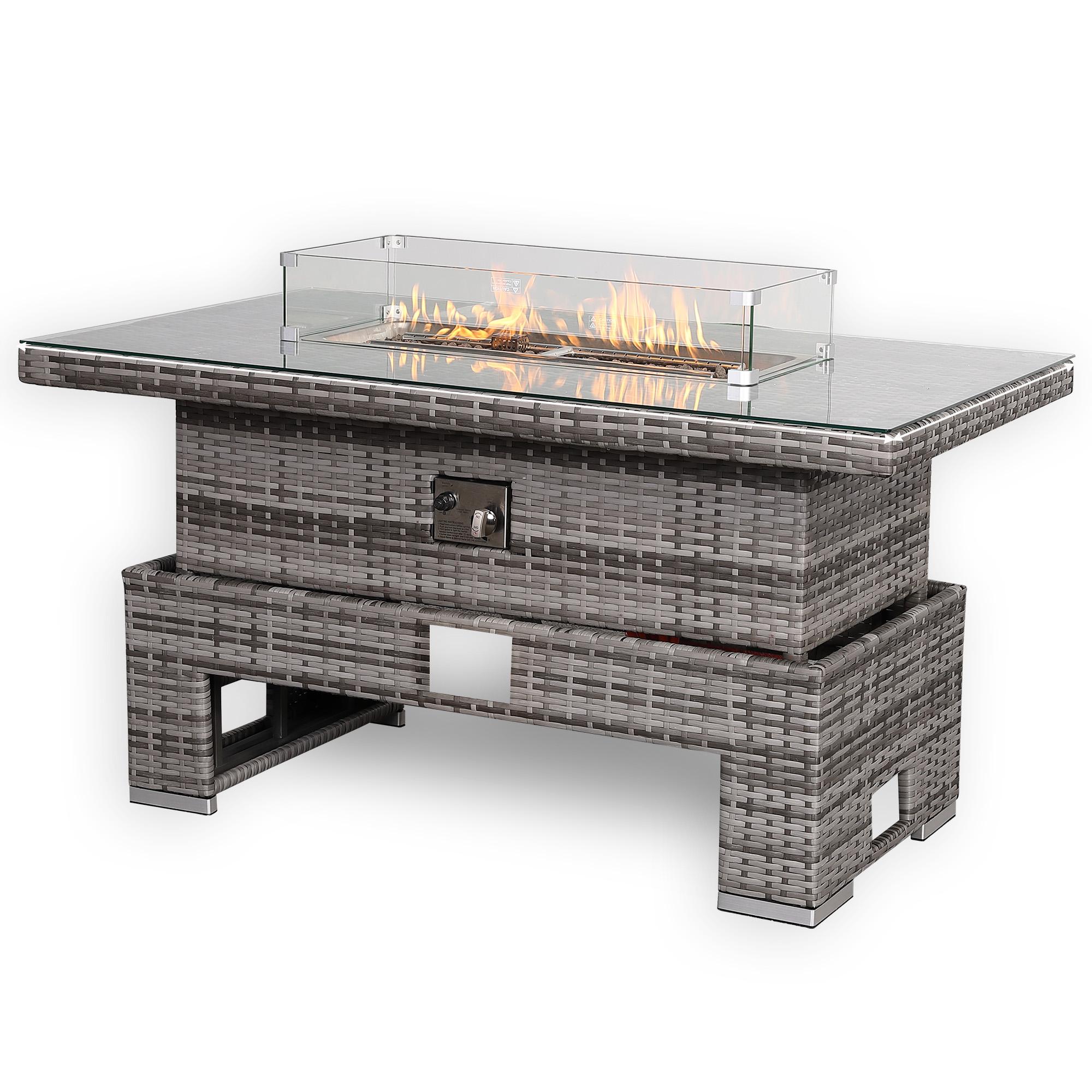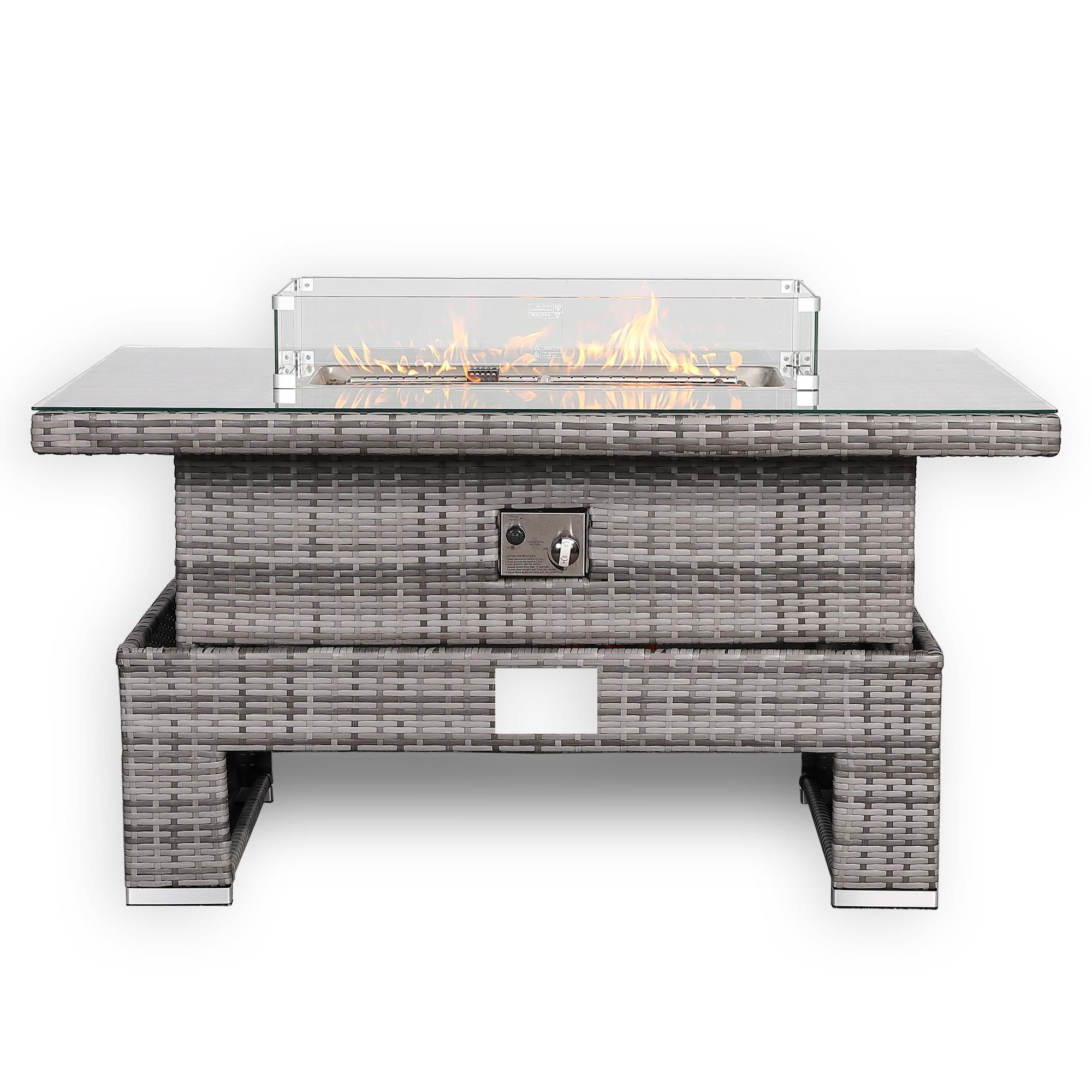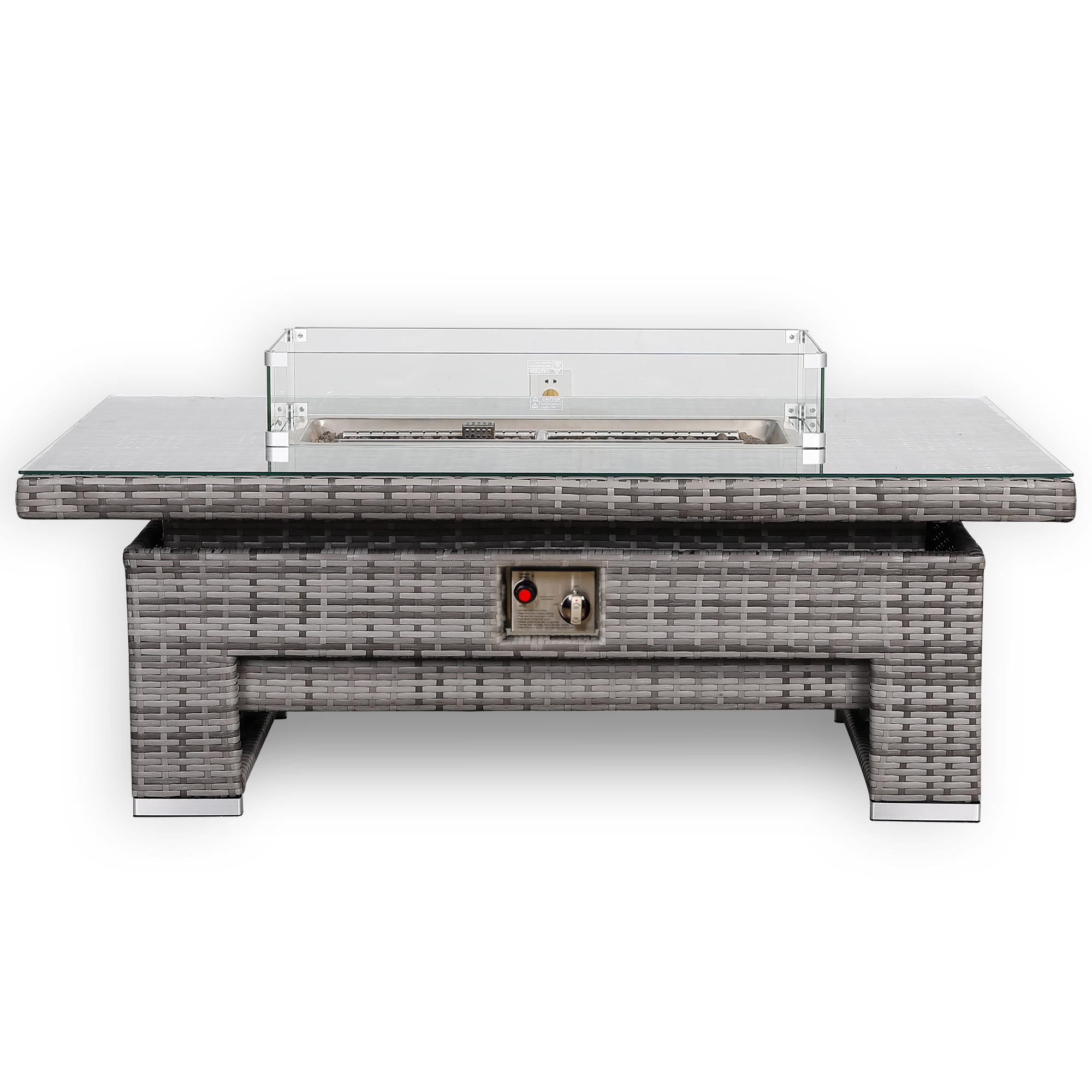 This stylish outdoor furniture set is an eye-catching addition to any garden or terrace. It’s made in our small grey rattan and flame intensity is adjustable, equipped with a knob to adjust the firepower to meet different needs.